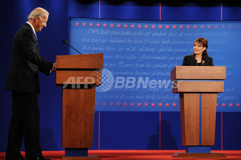 【10月3日 AFP】(一部更新、写真追加)米大統領選の副大統領候補、共和党のサラ・ペイリン(Sarah Palin)アラスカ(Alaska)州知事と民主党のジョー・バイデン(Joe Biden)上院議員は2日夜、ミズーリ(Missouri)州セントルイス(St. Louis)で討論会に臨んだ。