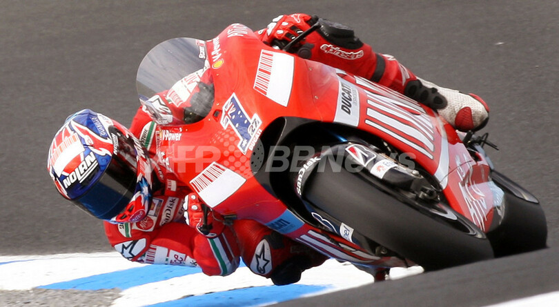 【10月4日 AFP】(写真追加)世界ロードレース選手権(WGP 2008)第16戦・オーストラリアGP・MotoGPクラス予選。ドゥカティ・マールボロ(Ducati Marlboro)のケーシー・ストーナー(Casey Stoner)は、23周を走行しトップタイムとなるベストラップ1分28秒665を記録し、シーズン8度目となるポールポジションを獲得した。