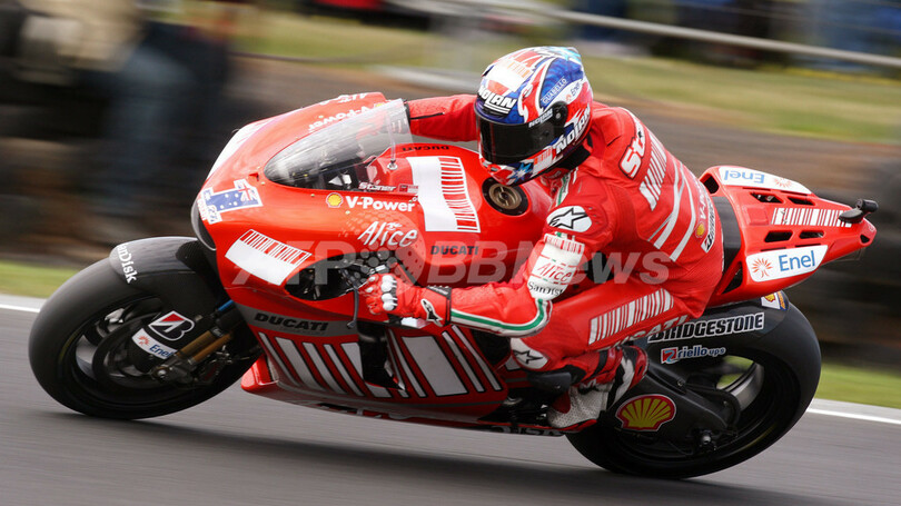 【10月4日 AFP】(写真追加)世界ロードレース選手権(WGP 2008)第16戦・オーストラリアGP・MotoGPクラス予選。ドゥカティ・マールボロ(Ducati Marlboro)のケーシー・ストーナー(Casey Stoner)は、23周を走行しトップタイムとなるベストラップ1分28秒665を記録し、シーズン8度目となるポールポジションを獲得した。