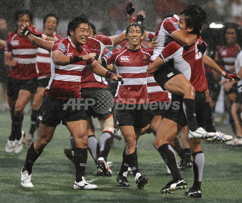 スポーツ ラグビー ラグビー・ワールドカップセブンズ・アジア地区予選 日本が優勝 2008年10月5日 21:13 発信地:香港 このニュースをシェア ‹ › ❮ 4/6 ❯ 香港を下して優勝を決めて喜びを爆発させる日本チーム。(2008年10月5日撮影)(c)AFP/Antony DICKSON 画像作成中 ! 【10月5日 AFP】ラグビー・ワールドカップセブンズ(IRB Rugby world cup Sevens 2009)アジア地区予選・決勝、日本対香港。試合は日本が12-10で香港を下して優勝を果たし、本大会出場を決めた。(c)AFP ラグビー 一覧へ> メディア・報道関係・法人の方向け 写真・動画 購入のお問合せ>