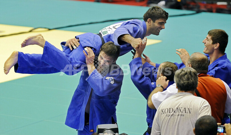 スポーツ スポーツ その他 世界柔道団体選手権 男子グルジアが優勝 2008年10月5日 21:35 発信地:東京 [ アジア・オセアニア 東京 ] このニュースをシェア ‹ › ❮ 3/4 ❯ 2008世界柔道団体選手権大会・男子決勝でウズベキスタンの%%Navruz Jurakobilov%%に勝利し喜びを表すグルジアのデイヴィド・ ケブヒシビリ(%%David Kevkhishvili%%、左上)。(2008年10月5日撮影)(c)AFP/Kazuhiro NOGI 画像作成中 ! 【10月5日 AFP】2008世界柔道団体選手権大会(2008 World Judo team championships)男子決勝。グルジアはウズベキスタンと対戦し、4-2で勝利し初優勝を飾った。(c)AFP スポーツ その他 一覧へ> メディア・報道関係・法人の方向け 写真・動画 購入のお問合せ>