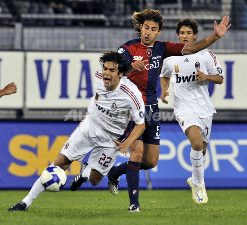 スポーツ サッカー ミラン アウェーでカリアリと分ける 2008年10月6日 8:24 発信地:カリアリ/イタリア [ ヨーロッパ イタリア ] このニュースをシェア ‹ › ❮ 13/15 ❯ カリアリのダニエレ・コンティ(%%Daniele Conti%%、中央)と競り合い転倒するACミランのカカ(%%Kaka%%、左)。(2008年10月5日撮影)(c)AFP/DAMIEN MEYER 画像作成中 ! 【10月6日 AFP】08-09イタリア・セリエA第6節、カリアリ(Cagliari Calcio)対ACミラン(AC Milan)。試合は0-0の引き分けに終わり、ミランの連勝は3で止まった。(c)AFP サッカー 一覧へ> メディア・報道関係・法人の方向け 写真・動画 購入のお問合せ>