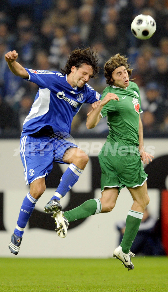 スポーツ サッカー シャルケ対ボルフスブルクは2-2のドロー 2008年10月6日 8:46 発信地:ゲルゼンキルヘン/ドイツ [ ヨーロッパ ドイツ ] このニュースをシェア ‹ › ❮ 4/6 ❯ VfLボルフスブルクのアンドレア・バルツァッリ (%%Andrea Barzagli%%、右)と競り合うシャルケ04のケヴィン・クラニー(%%Kevin Kuranyi%%)。(2008年10月5日撮影)(c)AFP/DDP/VOLKER HARTMANN 画像作成中 ! 【10月6日 AFP】08-09ドイツ・ブンデスリーガ1部第7節、シャルケ04(Schalke04)対VfLボルフスブルク(VfL Wolfsburg)。試合は2-2の引き分けに終わり、両チームは勝ち点1を分け合った。(c)AFP サッカー 一覧へ> メディア・報道関係・法人の方向け 写真・動画 購入のお問合せ>
