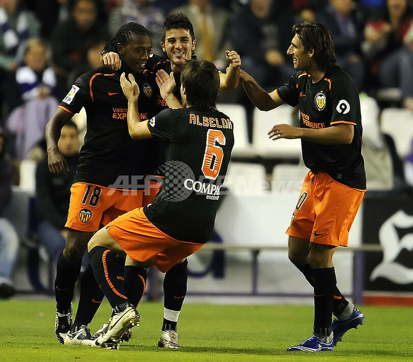 スポーツ サッカー バレンシア アウェーでバジャドリードを下し4連勝 2008年10月6日 9:31 発信地:バジャドリード/スペイン [ ヨーロッパ スペイン ] このニュースをシェア ‹ › ❮ 3/7 ❯ 後半9分に決勝点を決めたマヌエル・フェルナンデス(%%Manuel Fernandes%%、左)を祝福するバレンシアのミゲル・アングーロ(%%Miguel Angel Angulo%%、右)、ダビド・アルベルダ(%%David Albelda%%、手前)、ダビド・ビジャ(%%David Villa%%、奥)。(2008年10月5日撮影)(c)AFP/DANI POZO 画像作成中 ! 【10月6日 AFP】08-09スペイン1部リーグ第6節、レアル・バジャドリード(Real Valladolid)対バレンシア(Valencia CF)。試合はバレンシアが1-0で勝利し、4連勝で第3節からの首位を守った。(c)AFP サッカー 一覧へ> メディア・報道関係・法人の方向け 写真・動画 購入のお問合せ>