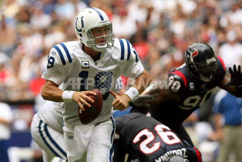 スポーツ アメリカンフットボール コルツ 敵地でテキサンズに競り勝つ 2008年10月6日 12:02 発信地:ヒューストン/米国 [ 北米 米国 ] このニュースをシェア ‹ › ❮ 5/11 ❯ ヒューストン・テキサンズ戦で第4クォーターにスクランブルでボールを運ぶインディアナポリス・コルツのペイトン・マニング(%%Peyton Manning%%)。(2008年10月5日撮影)(c)AFP/Getty Images/Stephen Dunn 画像作成中 ! 【10月6日 AFP】08NFL・第5週、ヒューストン・テキサンズ(Houston Texans)対インディアナポリス・コルツ(Indianapolis Colts)。試合はコルツが31-27でテキサンズに競り勝った。(c)AFP/Getty Images アメリカンフットボール 一覧へ> メディア・報道関係・法人の方向け 写真・動画 購入のお問合せ>