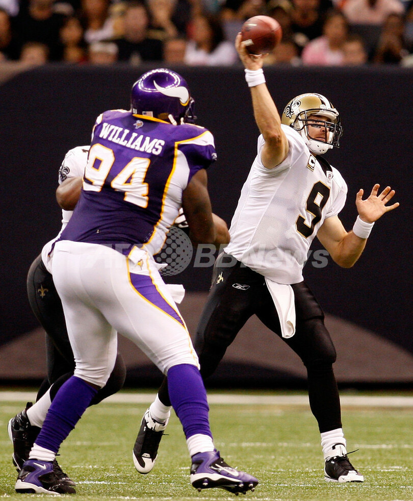 【10月7日 AFP】08NFL・第5週、ニューオーリンズ・セインツ(New Orleans Saints)対ミネソタ・バイキングス(Minnesota Vikings)。試合はバイキングスが30-27でセインツを下した。