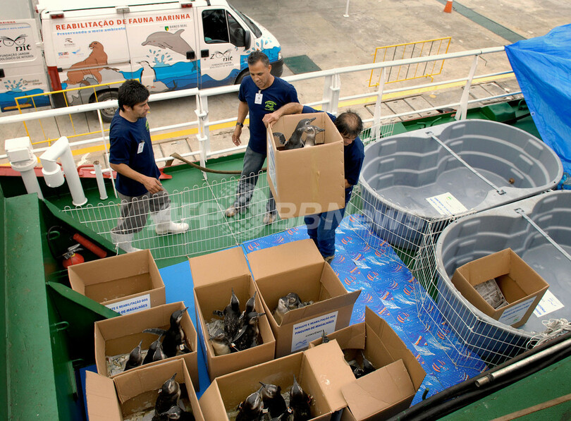 【10月8日 AFP】ブラジルで7日、リオデジャネイロ(Rio de Janeiro)沖で立ち往生していたところを保護されたマゼラン・ペンギン31頭が船に積みこまれ、元の生息地であるアルゼンチンのパタゴニア(Patagonia)へ帰還する旅の第一歩を踏み出した。