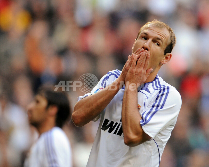 【10月8日 AFP】スペインのアス(AS)紙は7日、同国1部リーグのレアル・マドリード(Real Madrid)のに所属するアリエン・ロッベン(Arjen Robben)が、太ももの故障のため19日に行われるアトレティコ・マドリード(Atletico de Madrid)とのマドリードダービーに出場できないかもしれない、と報じた。