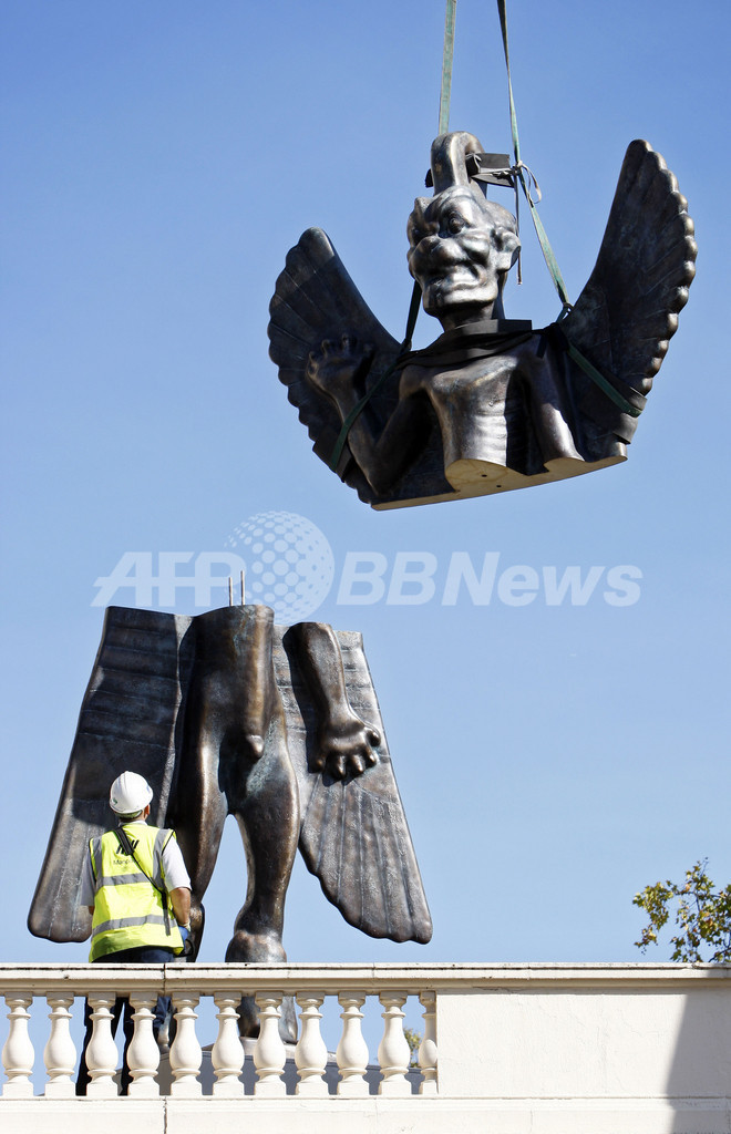 【10月13日 AFP】英ロンドン(London)の現代美術館「インスティテュート・オブ・コンテンポラリーアート(Institute of the Contemporary Arts、ICA)」の屋上に、アッシリアやバビロニアの神話に登場する神「ハンビ(Hanbi)」の息子、鬼神「パズズ(Pazuzu)」の高さ6メートルの像が出現した。