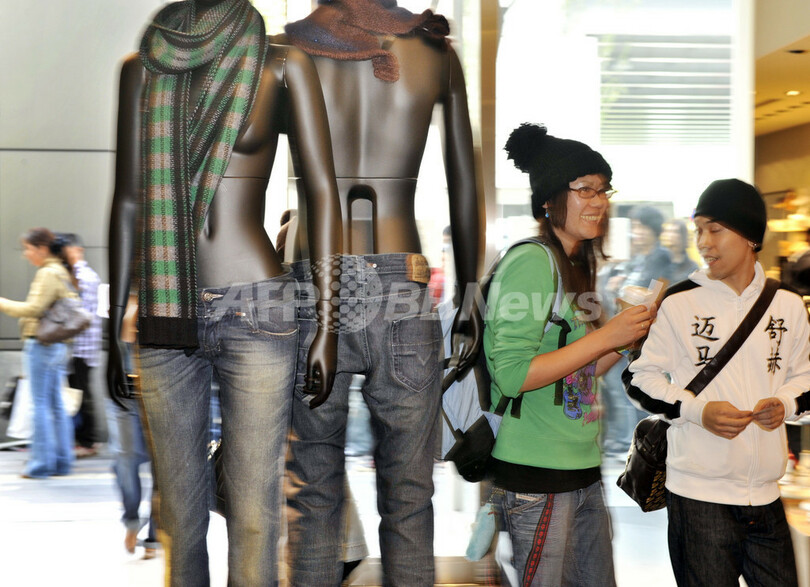 限定デニムプレゼントの対象となったのは、当日に店舗で1点以上商品を購入した人と、10月11日開催の音楽イベント「DIESEL XXX」の前売券を購入した人。日本国内では、銀座以外に、原宿、大阪、福岡、札幌などの店舗でプレゼントが行われた。(c)AFP