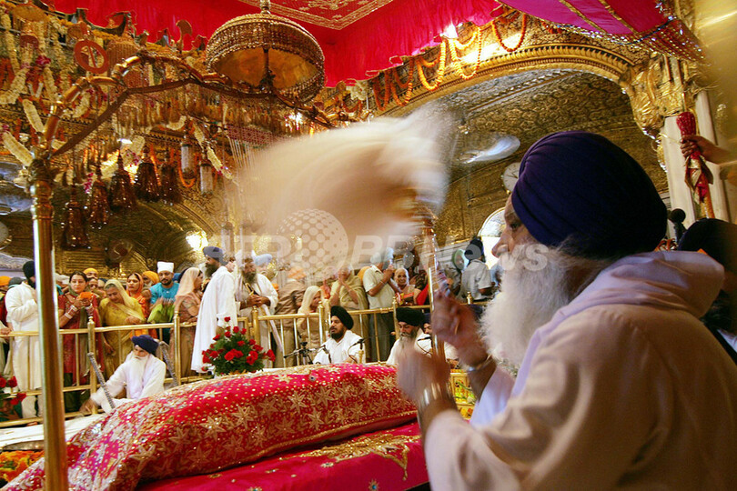 【10月12日 AFP】インド北部パンジャブ(Punjab)州アムリツァル(Amritsar)のシーク教総本山ハリマンディル・サーヒブ(Harmandir Sahib、通称・黄金寺院)で8日、第4代グル(指導者)ラーム・ダース(Ram Dass)の生誕を祝う祭典が行われた。ラーム・ダースは、1574年に現在のパキスタン・ラホール(Lahore)に生まれ、「Chauthi Patshahi」もしくは第4代グルとしてアムリツァルを建設したことで知られている。(c)AFP