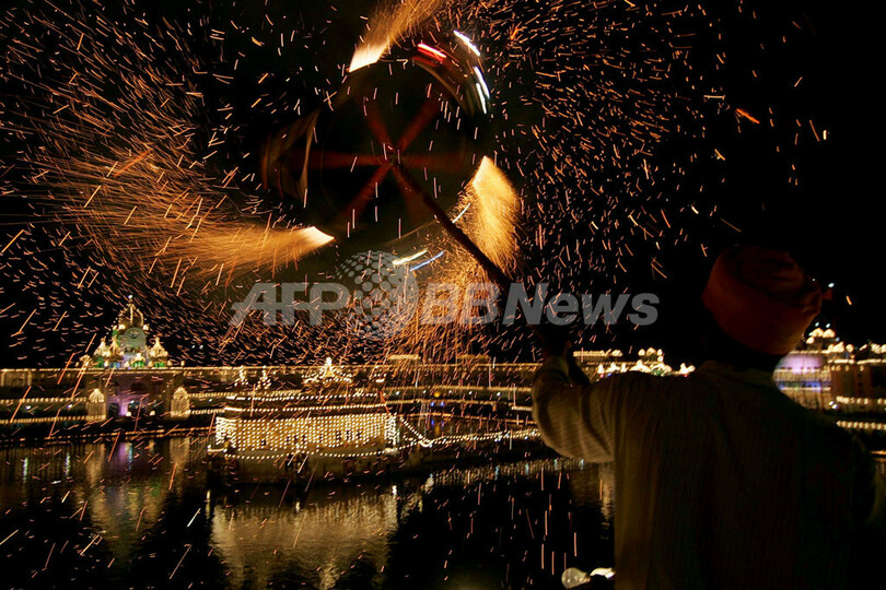 【10月12日 AFP】インド北部パンジャブ(Punjab)州アムリツァル(Amritsar)のシーク教総本山ハリマンディル・サーヒブ(Harmandir Sahib、通称・黄金寺院)で8日、第4代グル(指導者)ラーム・ダース(Ram Dass)の生誕を祝う祭典が行われた。ラーム・ダースは、1574年に現在のパキスタン・ラホール(Lahore)に生まれ、「Chauthi Patshahi」もしくは第4代グルとしてアムリツァルを建設したことで知られている。(c)AFP