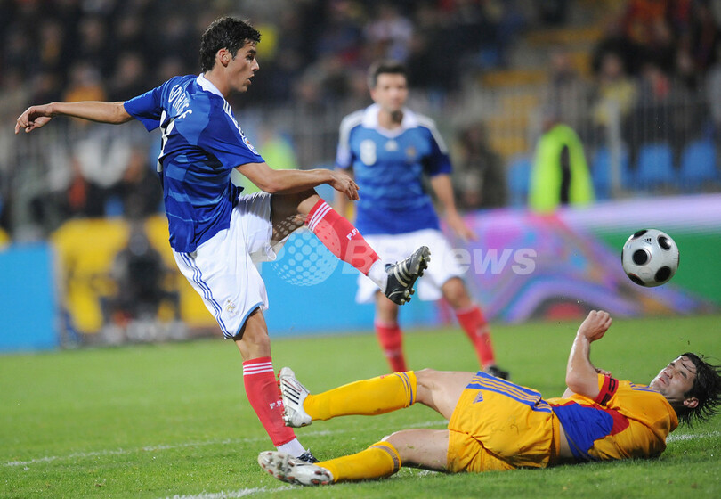 前半6分にフロレンティン・ペトレ(Florentin Petre)、同17分にニコラエ・ドリン・ゴイアン(Nicolae Dorin Goian)がそれぞれ得点を挙げルーマニアに2点を先取されたフランスは、同36分にフランク・リベリ(Franck Ribery)の得点で1点を返し前半を1-2で折り返すと、迎えた後半24分にヨアン・グルクフ(Yoann Gourcuff)が代表初得点となる約30メートルのミドルシュートを決めて2-2の同点に追いついた。(c)AFP