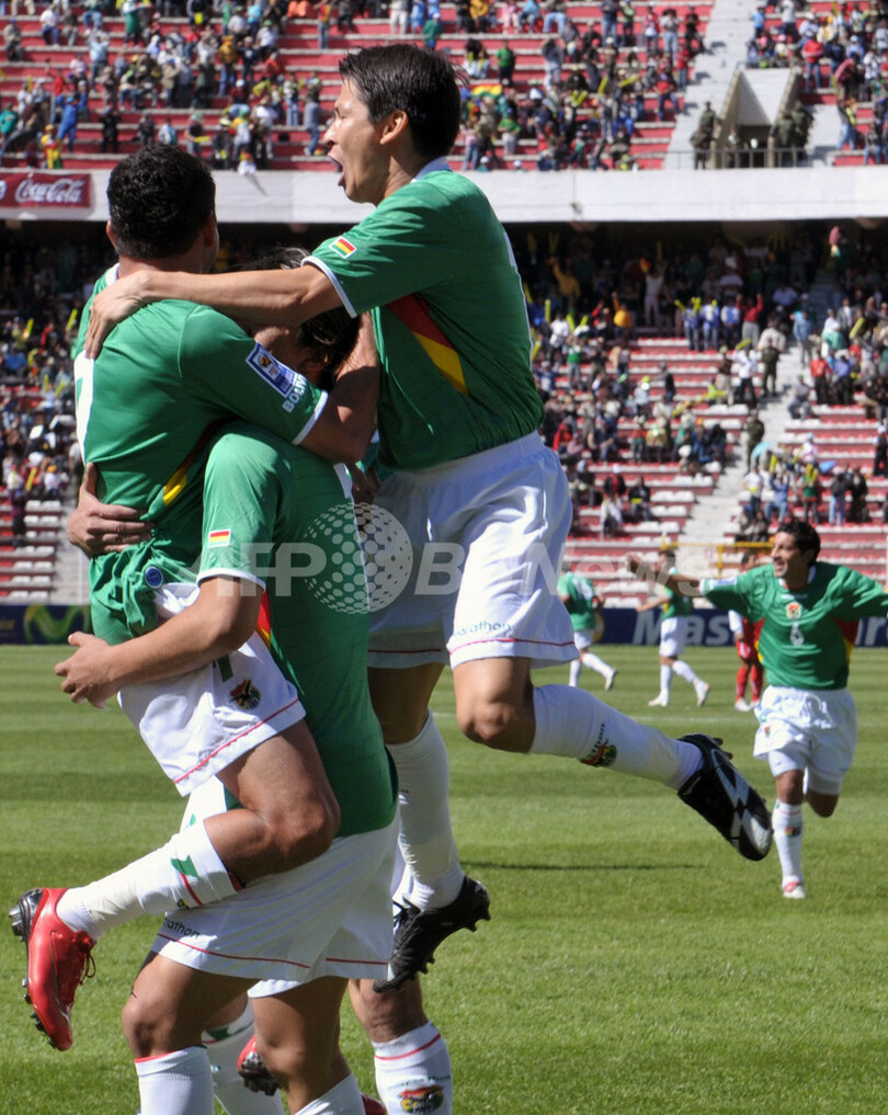 スポーツ サッカー ボリビア ペルーに快勝、W杯予選 2008年10月12日 11:33 発信地:ラパス/ボリビア [ 中南米 ボリビア ] このニュースをシェア ‹ › ❮ 10/10 ❯ 前半4分に先制ゴールを決めチームメイトから祝福を受けるボリビアのホアキン・ボテロ(%%Joaquin Botero%%、左)。(2008年10月11日撮影)(c)AFP/AIZAR RALDES 画像作成中 ! 【10月12日 AFP】2010年サッカーW杯南アフリカ大会(2010 World Cup)南米予選第9節、ボリビア対ペルー。試合はボリビアが3-0でペルーに勝利し、勝ち点を8に伸ばした。(c)AFP サッカー 一覧へ> メディア・報道関係・法人の方向け 写真・動画 購入のお問合せ>
