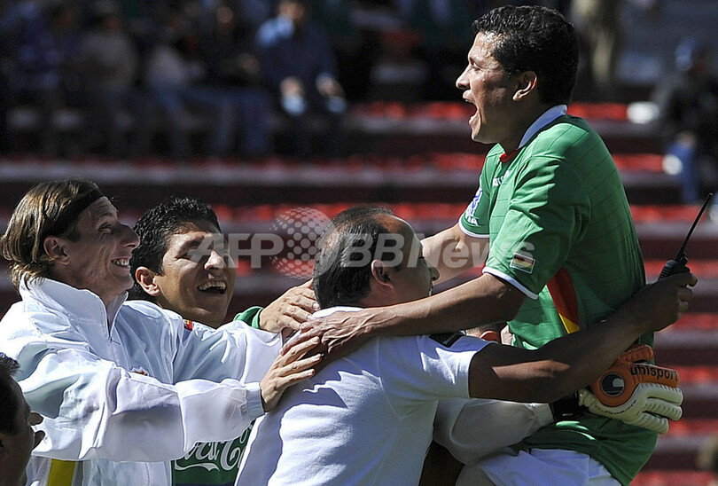 スポーツ サッカー ボリビア ペルーに快勝、W杯予選 2008年10月12日 11:33 発信地:ラパス/ボリビア [ 中南米 ボリビア ] このニュースをシェア ‹ › ❮ 3/10 ❯ ゴールを決め歓喜するボリビアのホアキン・ボテロ(%%Joaquin Botero%%、右)。(2008年10月11日撮影)(c)AFP/AIZAR RALDES 画像作成中 ! 【10月12日 AFP】2010年サッカーW杯南アフリカ大会(2010 World Cup)南米予選第9節、ボリビア対ペルー。試合はボリビアが3-0でペルーに勝利し、勝ち点を8に伸ばした。(c)AFP サッカー 一覧へ> メディア・報道関係・法人の方向け 写真・動画 購入のお問合せ>