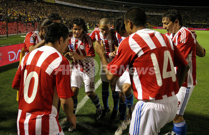 スポーツ サッカー パラグアイ コロンビア下し首位キープ、W杯予選 2008年10月12日 12:34 発信地:ボゴタ/コロンビア [ 中南米 コロンビア ] このニュースをシェア ‹ › ❮ 6/8 ❯ 前半9分にサルバドール・カバニャス(%%Salvador Cabanas%%、左)が得点を決めて歓喜するパラグアイの選手たち。(2008年10月11日撮影)(c)AFP/INALDO PEREZ 画像作成中 ! 【10月12日 AFP】2010年サッカーW杯南アフリカ大会(2010 World Cup)南米予選・第9節、コロンビア対パラグアイ。試合はパラグアイが1-0で勝利し、通算成績を6勝1敗2分けとして首位をキープした。 (c)AFP サッカー 一覧へ> メディア・報道関係・法人の方向け 写真・動画 購入のお問合せ>
