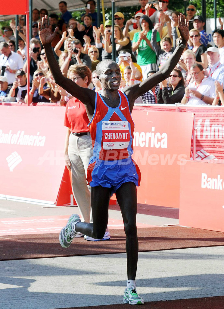 【10月13日 AFP】陸上、シカゴ・マラソン2008(Bank of America Chicago Marathon)。男子はケニアのエバンス・チェルイヨット(Evans Cheruiyot)が2時間6分25秒を記録し優勝を果たした。2位には2時間7分37秒を記録したデビッド・マンダゴ(David Mandago)が入り、3位には2時間11分39秒を記録したティモシー・チェリガト(Timothy Cherigat)が入り、ケニア勢が表彰台を独占した。(c)AFP