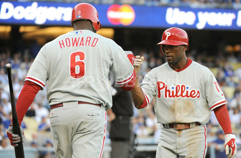【10月14日 AFP】08MLBプレーオフ、ナ・リーグ優勝決定シリーズ、ロサンゼルス・ドジャース(Los Angeles Dodgers)対フィラデルフィア・フィリーズ(Philadelphia Phillies)第4戦。試合はフィリーズが7-5で逆転勝ちを収め通算対戦成績を3勝1敗とし、リーグ制覇に王手をかけた。