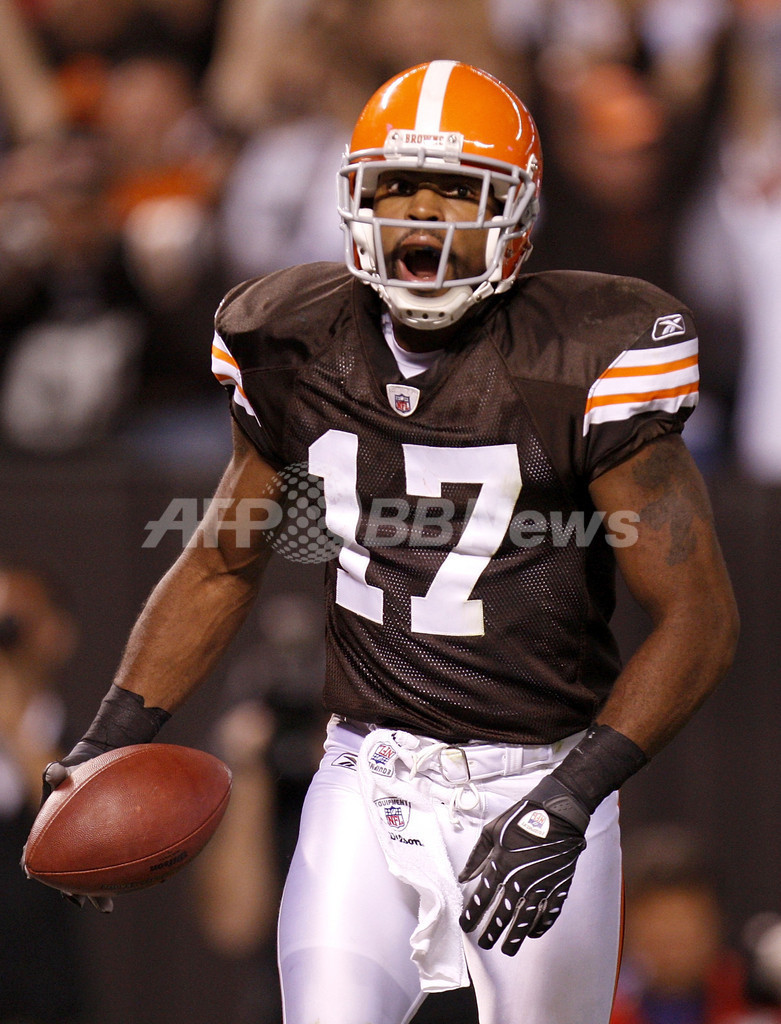 ジャイアンツ戦までの4試合で1勝しか挙げていなかったブラウンズは、2回のタッチダウン(TD)パスを成功させるなど310ヤードを獲得したクォーターバック(QB)のデレック・アンダーソン(Derek Anderson)と、ワイドレシーバー(WR)のブレイロン・エドワーズ(Braylon Edwards)の活躍によりシーズン2勝目を挙げた。(c)AFP
