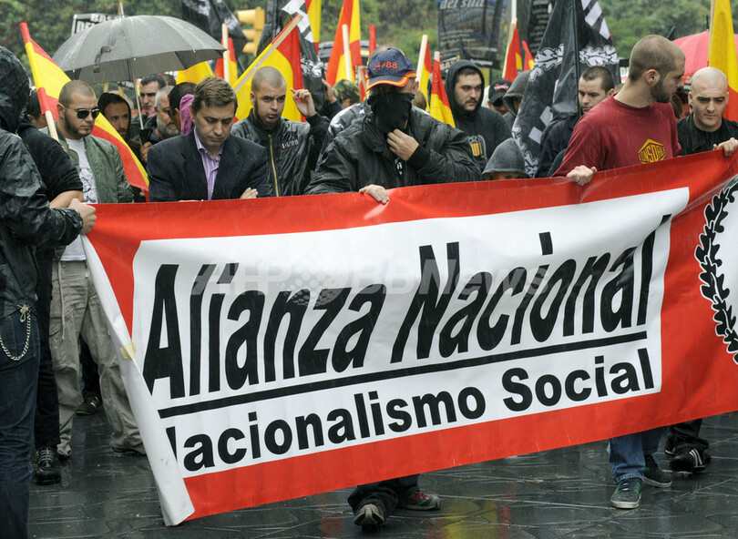ニュース 政治・経済 スペインの国家の日「イスパニアの日」、街では軍事パレードも 2008年10月14日 16:25 発信地:マドリード/スペイン [ ヨーロッパ スペイン ] このニュースをシェア ‹ › ❮ 3/14 ❯ スペインの建国記念日「イスパニアデー」を迎え、タラゴナ(Tarragona)で行われたパレードに参加した極右政党Alianza Nacionalの党員(2008年10月12日撮影)。(c)AFP/LLUIS GENE 画像作成中 ! 【10月14日 AFP】(一部更新)スペインの国家の日にあたる「イスパニアの日」の12日、各地で軍事パレードなどが行われた。(c)AFP 政治・経済 一覧へ> メディア・報道関係・法人の方向け 写真・動画 購入のお問合せ>