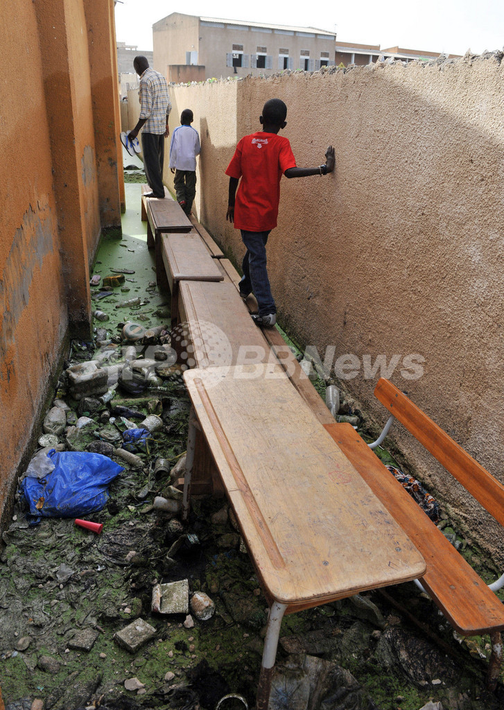 ニュース 社会 洪水引かず、セネガルの小学校で授業に支障 2008年10月16日 9:16 発信地:ダカール/セネガル [ アフリカ セネガル ] このニュースをシェア ‹ › ❮ 2/8 ❯ セネガルの首都ダカール(Dakar)のDiamaguene Sicap Mbao地区の学校で、浸水した通路を机伝いに移動する生徒ら(2008年10月13日撮影)。(c)AFP/GEORGES GOBET 画像作成中 ! 【10月16日 AFP】8月に豪雨による洪水に見舞われた西アフリカのセネガルでは、首都ダカール(Dakar)など一部地域で依然として水が引かず、道路の寸断が続いているほか、授業が再開できない小学校もある。(c)AFP 社会 一覧へ> メディア・報道関係・法人の方向け 写真・動画 購入のお問合せ>