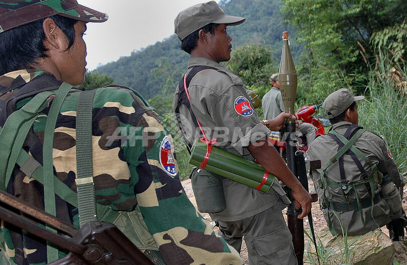 8月に両軍は駐留軍規模削減で合意したにもかかわらず、同国境地帯をめぐる両国の緊張はここへ来て、最大1000人の兵士が6週間にらみ合う状態まで発展している。(c)AFP/Suy Se