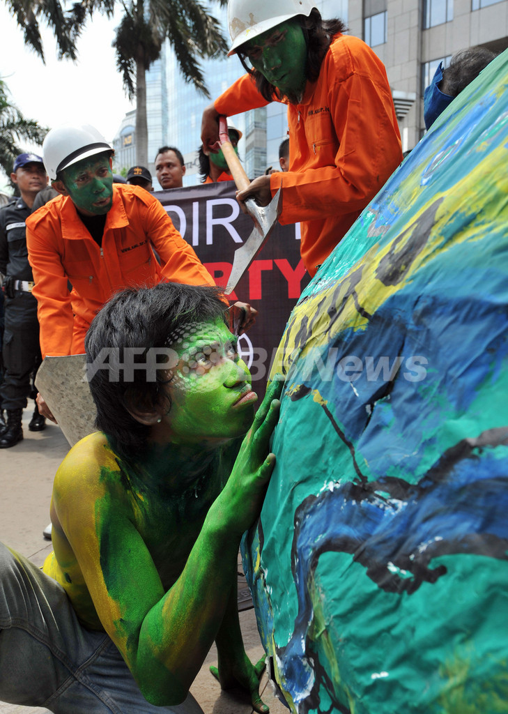 ニュース 政治・経済 ジャカルタで環境活動家が反世銀デモ 2008年10月16日 8:59 発信地:ジャカルタ/インドネシア [ アジア・オセアニア インドネシア ] このニュースをシェア ‹ › ❮ 1/5 ❯ インドネシアのジャカルタ(Jakarta)で世界銀行(World Bank)に対する抗議デモで、地球の模型を使った寸劇を演じる環境保護活動家ら(2008年10月14日撮影)。(c)AFP/Bay ISMOYO 画像作成中 ! 【10月16日 AFP】インドネシアの首都ジャカルタ(Jakarta)で14日、融資目的で世界銀行(World Bank)が行っている石炭や石油、ガスなどエネルギー企業への貸し付けが、環境破壊を引き起こす主因になっているとして、環境保護活動家のグループが世銀に対する街頭抗議デモを行った。(c)AFP 政治・経済 一覧へ> メディア・報道関係・法人の方向け 写真・動画 購入のお問合せ>
