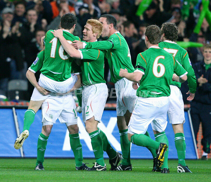 スポーツ サッカー アイルランド ホームでキプロスに辛勝、W杯予選 2008年10月16日 7:07 発信地:ダブリン/アイルランド [ ヨーロッパ アイルランド ] このニュースをシェア ‹ › ❮ 8/8 ❯ 前半5分に先制点を挙げチームメイトと歓喜するアイルランドのロビー・キーン(%%Robbie Keane%%、左)。(2008年10月15日撮影)(c)AFP/Peter Muhly 画像作成中 ! 【10月16日 AFP】2010年サッカーW杯南アフリカ大会(2010 World Cup)欧州予選・グループ8、アイルランド対キプロス。試合はアイルランドが1-0でキプロスを下した。(c)AFP サッカー 一覧へ> メディア・報道関係・法人の方向け 写真・動画 購入のお問合せ>