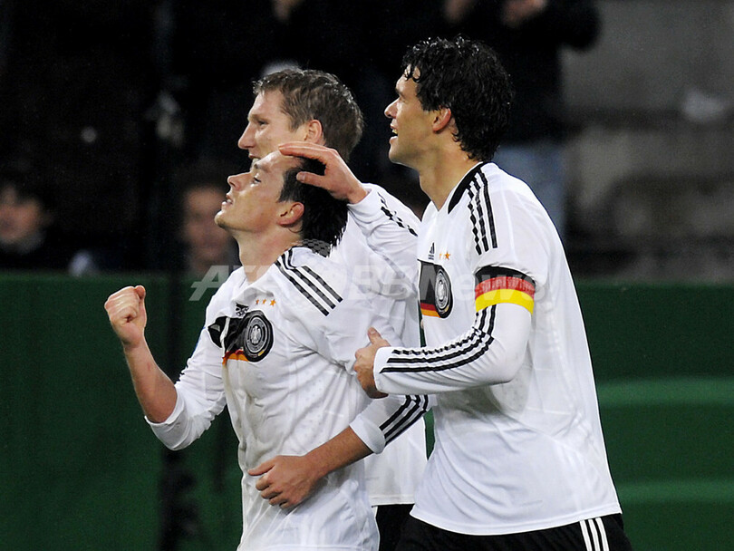 スポーツ サッカー ドイツ ホームでウェールズに辛勝、W杯予選 2008年10月16日 9:44 発信地:メンヘングラッドバッハ/ドイツ [ ヨーロッパ ドイツ ] このニュースをシェア ‹ › ❮ 1/20 ❯ 後半27分に先制ゴールを決めてバスティアン・シュバインシュタイガー(%%Bastian Schweinsteiger%%、奥)、ミヒャエル・バラック(%%Michael Ballack%%、右)と共に歓喜するドイツのペテル・トロショフスキ(%%Piotr Trochowski%%)。(2008年10月15日撮影)(c)AFP/DDP/SASCHA SCHUERMANN 画像作成中 ! 【10月16日 AFP】2010年サッカーW杯南アフリカ大会(2010 World Cup)欧州予選・グループ4、ドイツ対ウェールズ。試合はドイツが1-0でウェールズを下した。(c)AFP サッカー 一覧へ> メディア・報道関係・法人の方向け 写真・動画 購入のお問合せ>