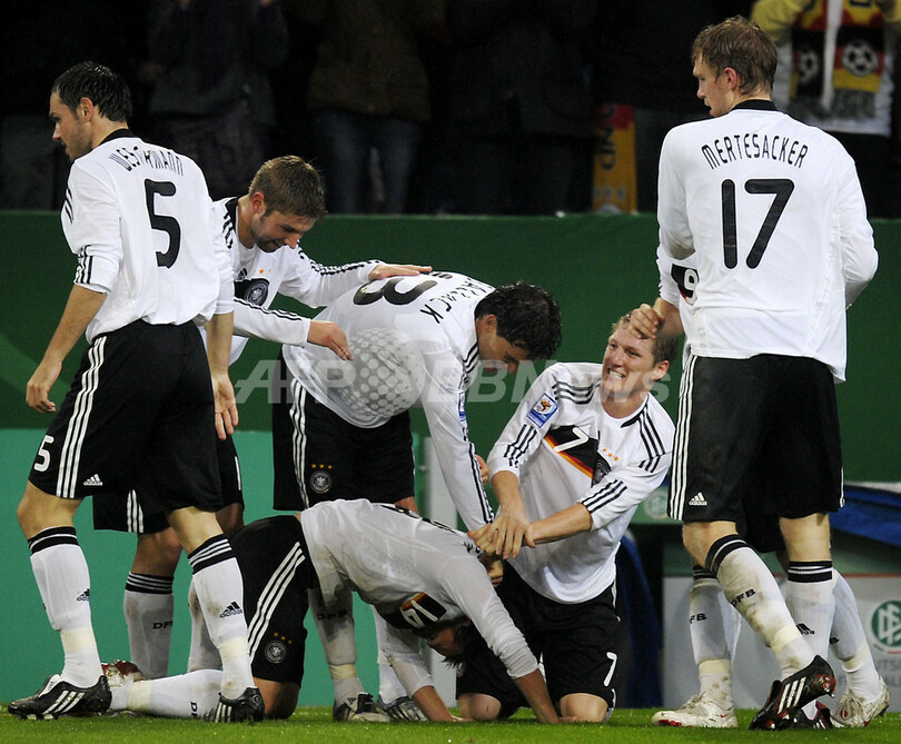 スポーツ サッカー ドイツ ホームでウェールズに辛勝、W杯予選 2008年10月16日 9:44 発信地:メンヘングラッドバッハ/ドイツ [ ヨーロッパ ドイツ ] このニュースをシェア ‹ › ❮ 8/20 ❯ 後半27分に先制ゴールを決めてチームメイトからの祝福を受けるドイツのペテル・トロショフスキ(%%Piotr Trochowski%%、中央下)。(2008年10月15日撮影)(c)AFP/DDP/SASCHA SCHUERMANN 画像作成中 ! 【10月16日 AFP】2010年サッカーW杯南アフリカ大会(2010 World Cup)欧州予選・グループ4、ドイツ対ウェールズ。試合はドイツが1-0でウェールズを下した。(c)AFP サッカー 一覧へ> メディア・報道関係・法人の方向け 写真・動画 購入のお問合せ>