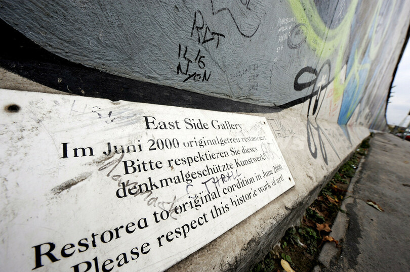 これらの作品は、1989年の壁崩壊から翌年にかけて全長1.3キロほどにわたりドイツ内外のアーティストがベルリンの壁に描いたもの。この壁の部分は「イーストサイド・ギャラリー(East Side Gallery)」との名前で知られ、保存されている。今回の復元作業では一度壁の表面を削り、オリジナルの作品を描いたアーティストたちに改めて描き直してもらう。ロシアのアーティスト、Wjatscheslaw Schljachowさんがトップバッターとなる。東西統一20周年を迎える2010年をめどに完成させる見通しだ。(c)AFP