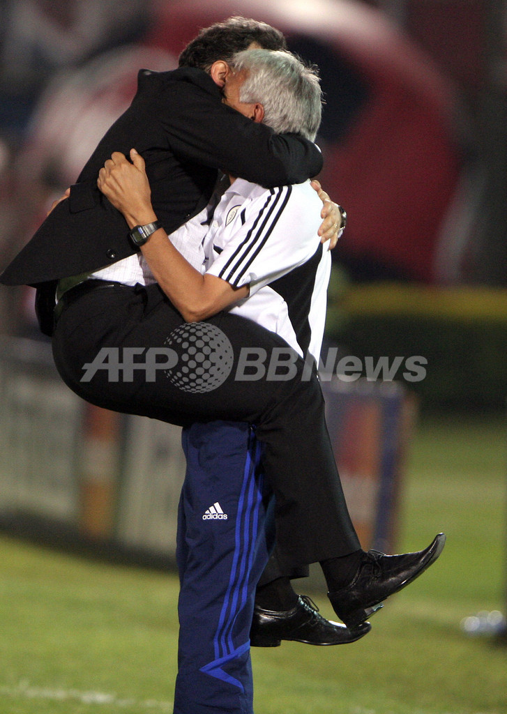 スポーツ サッカー パラグアイ 3連勝で首位キープ、W杯予選 2008年10月16日 12:04 発信地:アスンシオン/パラグアイ [ 中南米 パラグアイ ] このニュースをシェア ‹ › ❮ 3/10 ❯ チームが先制しアシスタントコーチ(右)に抱きついて歓喜するパラグアイのヘラルド・マルティーノ(%%Gerardo Martino%%)監督。(2008年10月15日撮影)(c)AFP/Jorge Romero 画像作成中 ! 【10月16日 AFP】2010年サッカーW杯南アフリカ大会(2010 World Cup)南米予選・第10節、パラグアイ対ペルー。試合はパラグアイが1-0でペルーを下して3連勝を飾り、通算成績7勝1敗2分けで勝ち点を23として首位をキープした。(c)AFP サッカー 一覧へ> メディア・報道関係・法人の方向け 写真・動画 購入のお問合せ>