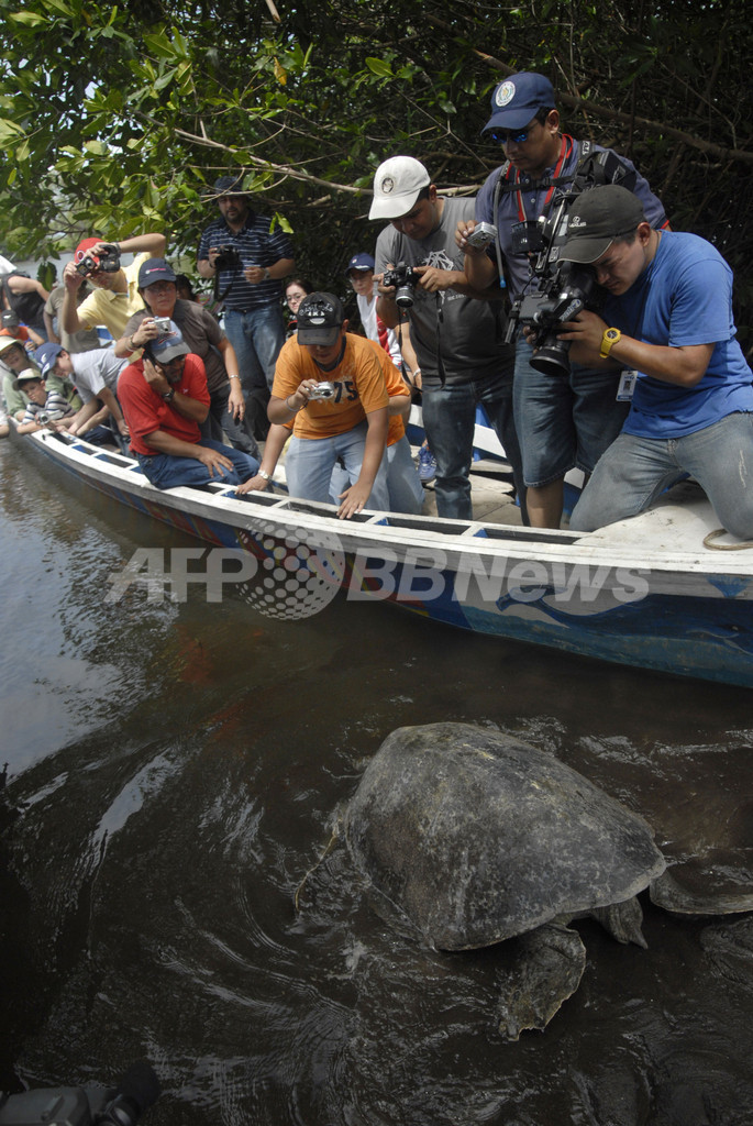 ニュース 環境・科学 グアテマラで絶滅危惧種のウミガメ放流 2008年10月20日 8:50 発信地:グアテマラ市/グアテマラ [ 中南米 グアテマラ ] このニュースをシェア ‹ › ❮ 10/14 ❯ グアテマラの首都グアテマラ市(Guatemala City)南方約170キロのシパカテ・ナランホ(Zipacate-Naranjo)のウミガメ保護区ポサ・デル・ナンセ(La Poza del Nance)で、太平洋に放されたばかりのウミガメを撮影する報道陣(2008年10月10日撮影)。(c)AFP/Johan Ordonez 画像作成中 ! 【10月20日 AFP】中米グアテマラのシパカテ(Zipacate)海岸で、絶滅の恐れがあるウミガメの1種の赤ちゃん240匹が太平洋に放流された。今回の放流は、政府の国家保護区委員会(National Council of Protected Areas、CONAP)が、希少なウミガメを人間の脅威から保護する自然保護計画の一環として行われたもの。(c)AFP 環境・科学 一覧へ> メディア・報道関係・法人の方向け 写真・動画 購入のお問合せ>