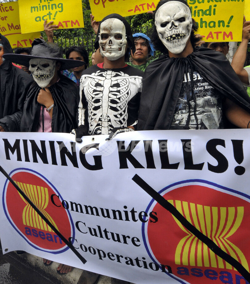 【10月20日 AFP】東南アジア諸国連合(Association of Southeast Asian Nations、ASEAN)と日中韓3か国の鉱業担当政府高官・業界代表による会合が開催されたフィリピンの首都マニラ(Manila)で前週、環境保護活動家のグループが、周辺地域に被害をもたらす採鉱反対を訴えるデモを行った。アナリストによれば、金融危機の影響で欧米地域では景気が低迷し、景気後退の可能性もある中、中国やインドをはじめとする開発途上国では、堅調な経済成長が予測される。(c)AFP
