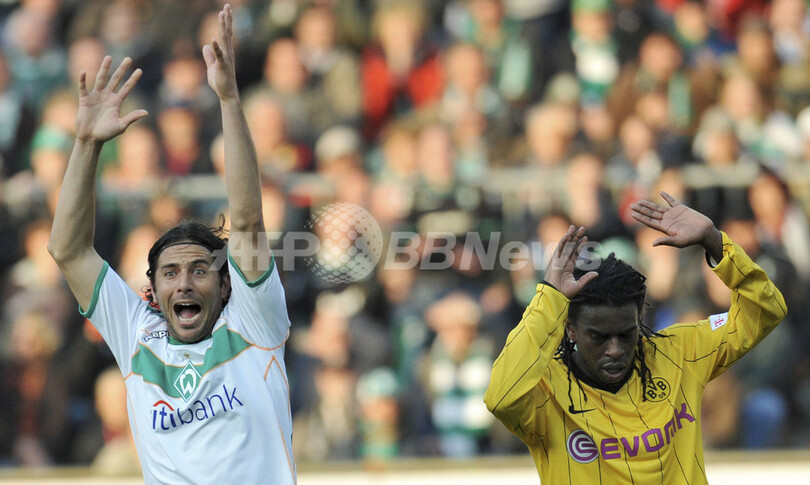 スポーツ サッカー ブレーメン ホームでドルトムントと引き分ける 2008年10月19日 9:31 発信地:ブレーメン/ドイツ [ ヨーロッパ ドイツ ] このニュースをシェア ‹ › ❮ 2/5 ❯ ボルシア・ドルトムントのティンガ(%%Tinga%%、右)のハンドをアピールするヴェルダー・ブレーメンのクラウディオ・ピサロ(%%Claudio Pizarro%%)。(2008年10月18日撮影)(c)AFP/DDP/DAVID HECKER 画像作成中 ! 【10月19日 AFP】08-09ドイツ・ブンデスリーガ1部第8節、ヴェルダー・ブレーメン(Werder Bremen)対ボルシア・ドルトムント(Borussia Dortmund)。試合は3-3の引き分けに終わった。(c)AFP サッカー 一覧へ> メディア・報道関係・法人の方向け 写真・動画 購入のお問合せ>