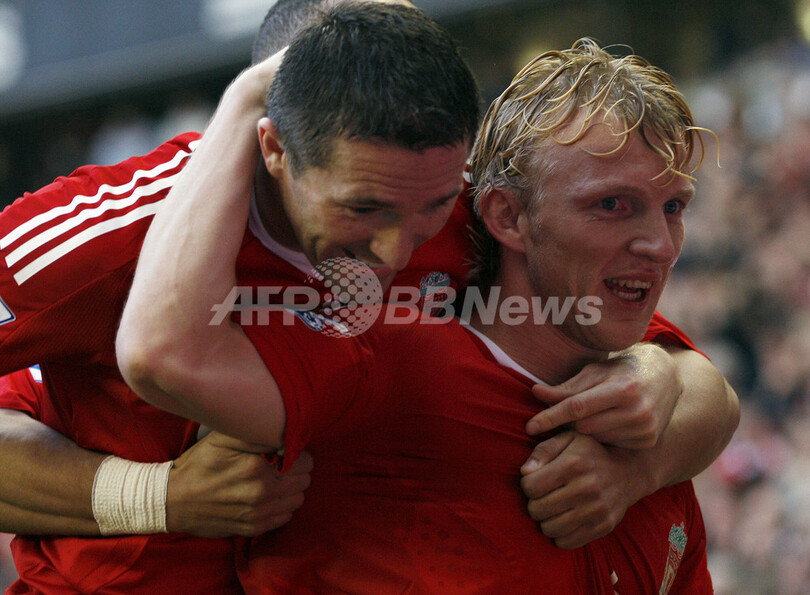 1-2とリードを許していたリバプールは、後半35分にアルベルト・リエラ(Albert Riera)が同点ゴールを決め、その5分後の同40分にカイトがジャーメイン・ペナント(Jermaine Pennant)のセンタリングに合わせ決勝点を決め、リバプールは首位のチェルシー(Chelsea)と同勝ち点で2位を守った。(c)AFP/Neil Johnston