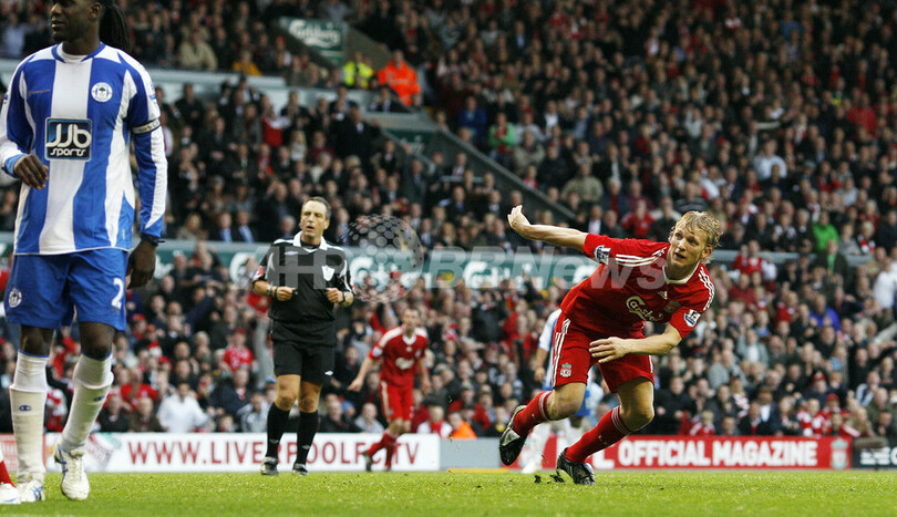 【10月19日 AFP】08-09イングランド・プレミアリーグ、リバプール(Liverpool FC)対ウィガン(Wigan Athletic)。試合はリバプールが3-2でウィガンを下し、リバプールは3連勝を飾った。