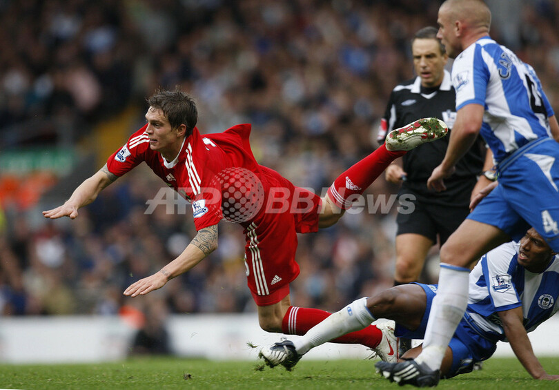 【10月19日 AFP】08-09イングランド・プレミアリーグ、リバプール(Liverpool FC)対ウィガン(Wigan Athletic)。試合はリバプールが3-2でウィガンを下し、リバプールは3連勝を飾った。