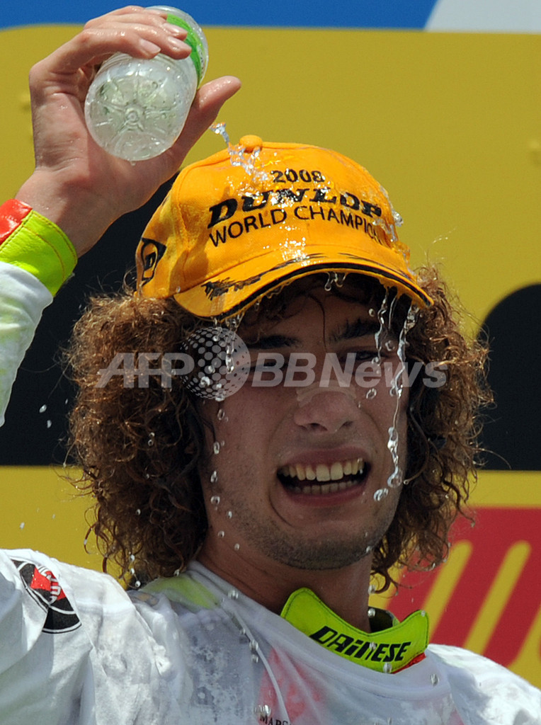 【10月19日 AFP】世界ロードレース選手権(WGP 2008)第17戦・マレーシアGP・250ccクラス決勝。ポールポジションからスタートしたメティス・ジレラ(Metis Gilera)のマルコ・シモンセッリ(Marco Simoncelli)は、43分04秒771を記録して決勝を3位で終え、自身初となる250ccクラス総合優勝を決めた。