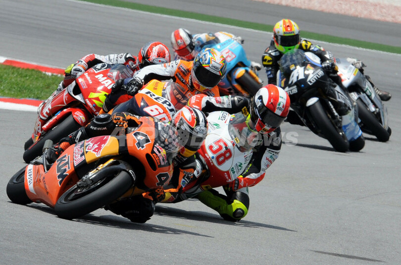【10月19日 AFP】世界ロードレース選手権(WGP 2008)第17戦・マレーシアGP・250ccクラス決勝。ポールポジションからスタートしたメティス・ジレラ(Metis Gilera)のマルコ・シモンセッリ(Marco Simoncelli)は、43分04秒771を記録して決勝を3位で終え、自身初となる250ccクラス総合優勝を決めた。