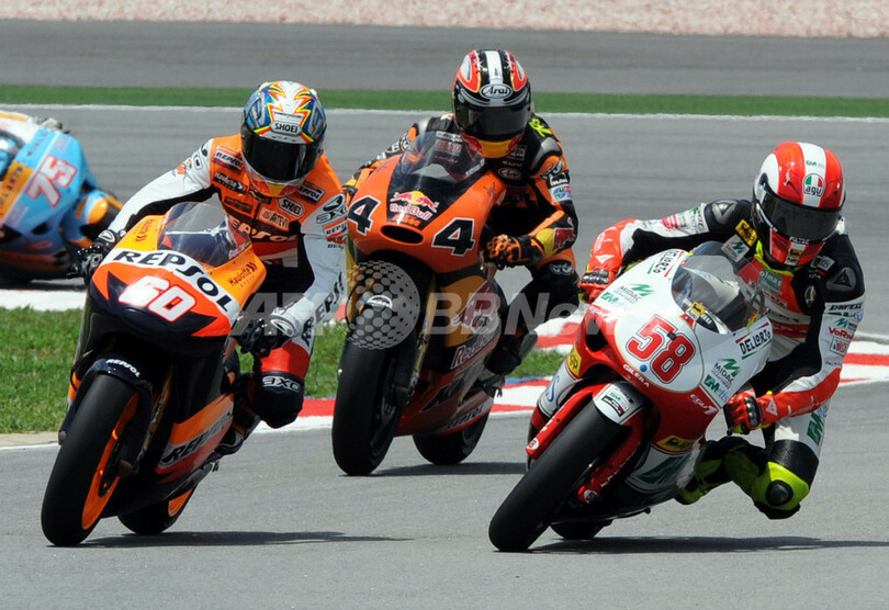 【10月19日 AFP】世界ロードレース選手権(WGP 2008)第17戦・マレーシアGP・250ccクラス決勝。ポールポジションからスタートしたメティス・ジレラ(Metis Gilera)のマルコ・シモンセッリ(Marco Simoncelli)は、43分04秒771を記録して決勝を3位で終え、自身初となる250ccクラス総合優勝を決めた。