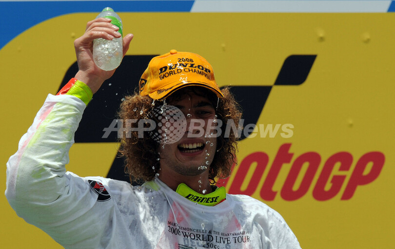 【10月19日 AFP】世界ロードレース選手権(WGP 2008)第17戦・マレーシアGP・250ccクラス決勝。ポールポジションからスタートしたメティス・ジレラ(Metis Gilera)のマルコ・シモンセッリ(Marco Simoncelli)は、43分04秒771を記録して決勝を3位で終え、自身初となる250ccクラス総合優勝を決めた。