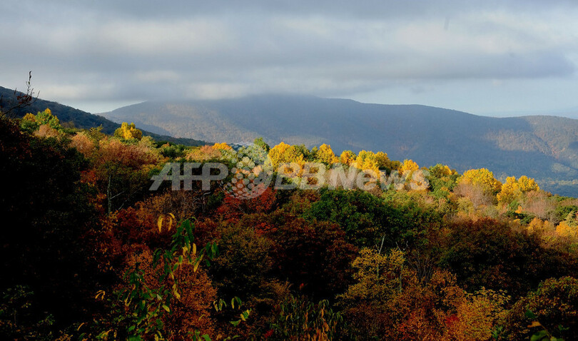 米・バージニア州(Virginia)のシェナンドーア国立公園(Shenandoah National Park)のスカイライン・ドライブ(Skyline Drive)からの紅葉したブルーリッジ山脈(Blue Ridge Mountains)の眺め(2008年10月18日撮影)。(c)AFP/Karen BLEIER