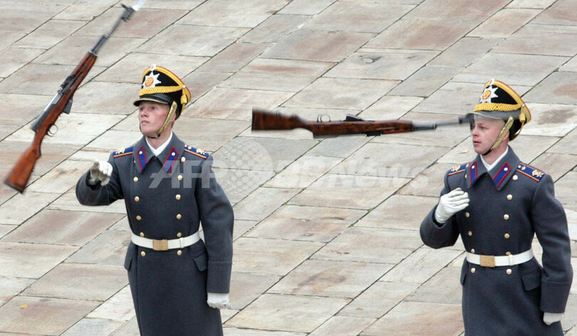 ニュース ライフ クレムリン宮殿儀仗兵のショー 2008年10月20日 18:59 発信地:モスクワ/ロシア [ ロシア・CIS ロシア ] このニュースをシェア ロシアの首都モスクワ(Moscow)のクレムリン(Kremlin)宮殿で行われた大統領を護衛する儀仗(じょう)兵隊のショーでライフルを宙に投げる兵士(2008年10月18日撮影)。(c)AFP/SERGEI SHAKHIDZHANYAN 【10月20日 AFP】ロシアの首都モスクワ(Moscow)のクレムリン(Kremlin)宮殿で18日、大統領を護衛する儀仗(じょう)兵隊のショーが行われた。(c)AFP ライフ 一覧へ> メディア・報道関係・法人の方向け 写真・動画 購入のお問合せ>