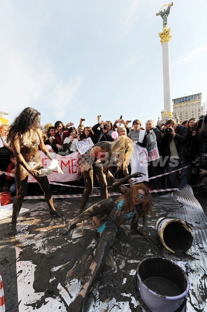 ニュース 政治・経済 こぼれ話 ドロドロ政治はもうたくさん! 水着の女性ら泥レスで抗議 2008年10月21日 10:59 発信地:キエフ/ウクライナ [ ロシア・CIS ウクライナ ] このニュースをシェア ‹ › ❮ 6/6 ❯ ウクライナの首都キエフ(Kiev)の独立広場で19日、泥レスリングのパフォーマンスで解散総選挙に抗議する女性権利団体「Femen」のメンバー(2008年10月19日撮影)。(c)AFP/SERGEI SUPINSKY 画像作成中 ! 【10月21日 AFP】ウクライナの首都キエフ(Kiev)の独立広場で19日、女性権利団体「Femen」のメンバーたちが水着姿で泥レスリングのパフォーマンスを行い、泥沼化したウクライナの政治状況に抗議した。メンバーたちは、先に議会を解散し12月7日に総選挙を行うとしたビクトル・ユーシェンコ(Viktor Yushchenko)大統領の決定に、異議を唱えている。(c)AFP 政治・経済 一覧へ> メディア・報道関係・法人の方向け 写真・動画 購入のお問合せ>