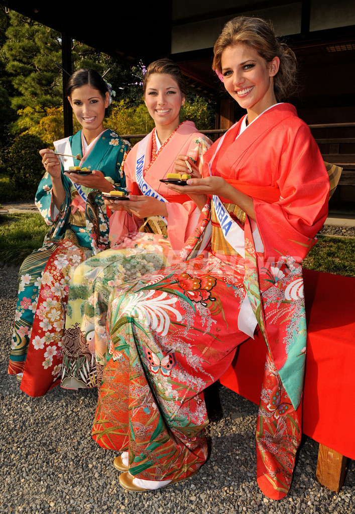 ニュース ライフ 着物姿のミス・インターナショナル代表、二条城でお茶会 2008年10月22日 5:05 発信地:京都/京都 [ アジア・オセアニア 京都 ] このニュースをシェア ‹ › ❮ 3/21 ❯ 京都・二条城(Nijojo)の庭園で着物姿の2008ミス・インターナショナル世界大会(Miss International Beauty Pageant 2008)の各国代表ら。大会は来月8日、マカオで開かれる(2008年10月21日撮影)。(c)AFP/Toru YAMANAKA 画像作成中 ! 【10月22日 AFP】11月8日にマカオ(Macau)で開かれる2008ミス・インターナショナル世界大会(Miss International Beauty Pageant 2008)を前に、京都市内の二条城(Nijojo castle)で21日、各国代表らが着物姿でお茶会に出席した。(c)AFP ライフ 一覧へ> メディア・報道関係・法人の方向け 写真・動画 購入のお問合せ>