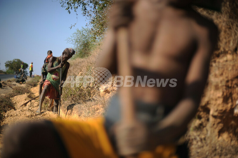 南西部沿岸の町トゥレアル(Tulear)と内陸部を結ぶ道路沿いのサカラハ(Sakaraha)でも、ケーブルを敷設するための溝を掘る作業が沿道で進められている。労働者の日当はわずか2ドル(約200円)だ。