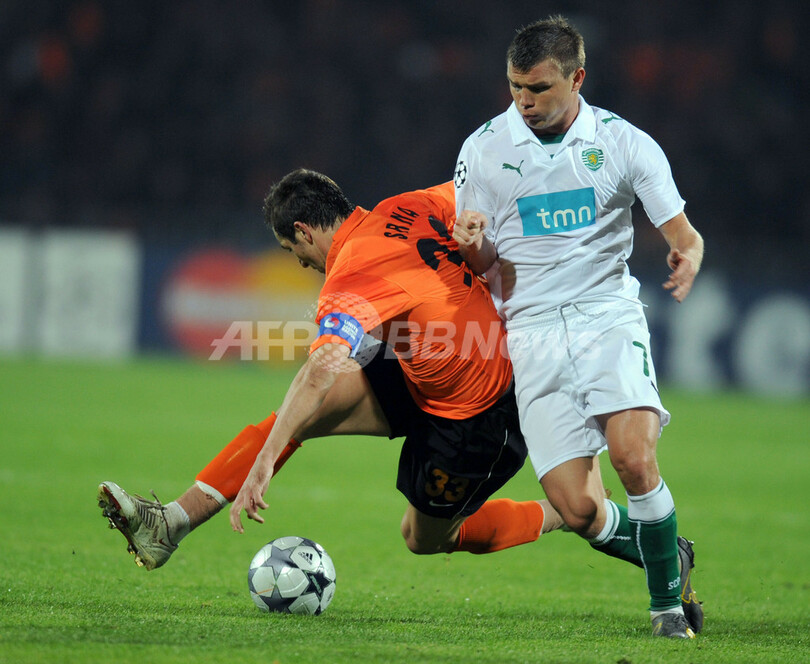 スポーツ サッカー スポルティング・リスボン アウェーでシャフタール・ドネツクに勝利 2008年10月23日 6:07 発信地:ドネツク/ウクライナ [ ロシア・CIS ウクライナ ] このニュースをシェア ‹ › ❮ 11/13 ❯ ボールを競り合うスポルティング・リスボンのマラト・イズマイロフ(%%Marat Izmailov%%)とシャフタール・ドネツクのダリオ・スルナ(%%Darijo Srna%%)。(2008年10月22日撮影)(c)AFP/SERGEI SUPINSKY 画像作成中 ! 【10月23日 AFP】(写真追加)サッカー欧州チャンピオンズリーグ2008-09(UEFA Champions League 2008-09)グループリーグC第3節、シャフタール・ドネツク(Shakhtar Donetsk)対スポルティング・リスボン(Sporting Lisbon)。試合はスポルティング・リスボンが1-0でシャフタール・ドネツクを下した。(c)AFP サッカー 一覧へ> メディア・報道関係・法人の方向け 写真・動画 購入のお問合せ>