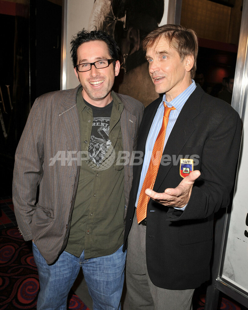 米カリフォルニア(California)州ロサンゼルス(Los Angeles)の映画館Mann Chinese 6 Theatersで開催された、ライオンズゲイト(Lionsgate)配給の映画『ソウ5(Saw V)』のプレミア上映会に出席する、「ソウ」シリーズ2-4を監督したダーレン・リン・バウズマン(Darren Lynn Bousman、左)と俳優のビル・モーズリイ(Bill Moseley、2008年10月21日撮影)。(c)AFP/Getty Images/Kevin Winter