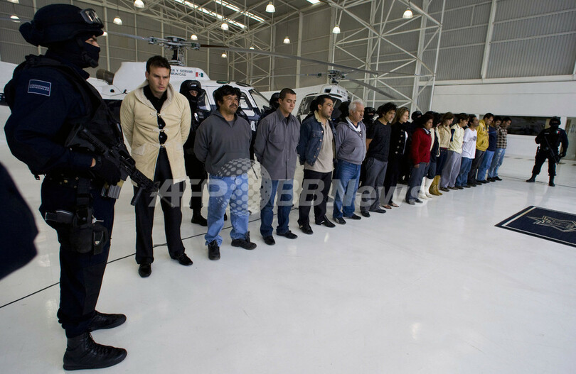 ニュース 社会 メキシコ麻薬組織の豪邸公開、希少動物も 2008年10月23日 15:38 発信地:メキシコ市/メキシコ [ 中南米 メキシコ ] このニュースをシェア ‹ › ❮ 22/22 ❯ 逮捕され、報道陣の前に並ばされた麻薬密売組織のメンバー15人(2008年10月19日撮影)。(c)AFP/Luis Acosta 画像作成中 ! 【10月23日 AFP】メキシコ警察当局は19日までに、メキシコ市(Mexico City)アルバロ・オブレゴン(Alvaro Obregon)地区にある麻薬密売組織の拠点となっていた豪邸でメンバー15人(うち11人はコロンビア人)を逮捕し、20日に同豪邸を報道陣に公開した。敷地内ではライオンやクロヒョウのほか、マンドリルやホワイトタイガーなどの希少動物も飼育されていた。(c)AFP 社会 一覧へ> メディア・報道関係・法人の方向け 写真・動画 購入のお問合せ>
